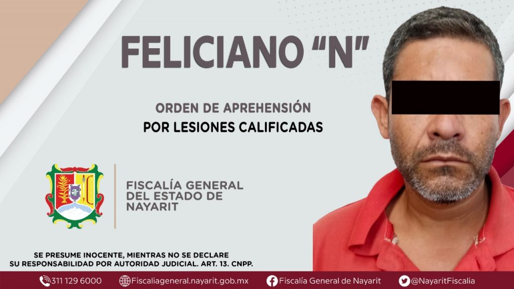La Fiscalía General de Nayarit a través de la Agencia de Investigación Criminal ejecutó una orden de aprehensión en la capital nayarita contra Feliciano “N”, por su presunta participación en hechos que según apreciación de la ley encuadran el delito de lesiones calificadas, cometido en agravio de una persona de sexo femenino de identidad reservada.