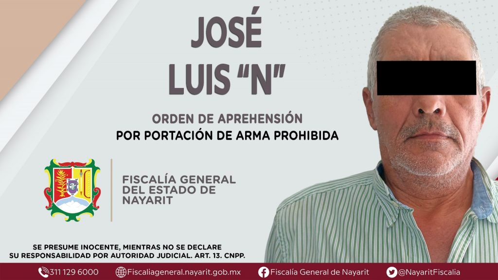 Elementos de la Agencia de Investigación Criminal de Nayarit ejecutaron una orden de aprehensión en la ciudad de Tepic contra José Luis “N”, por su presunta participación en hechos que según apreciación de la ley configuran el delito de portación de arma prohibida, cometido en agravio de la sociedad.