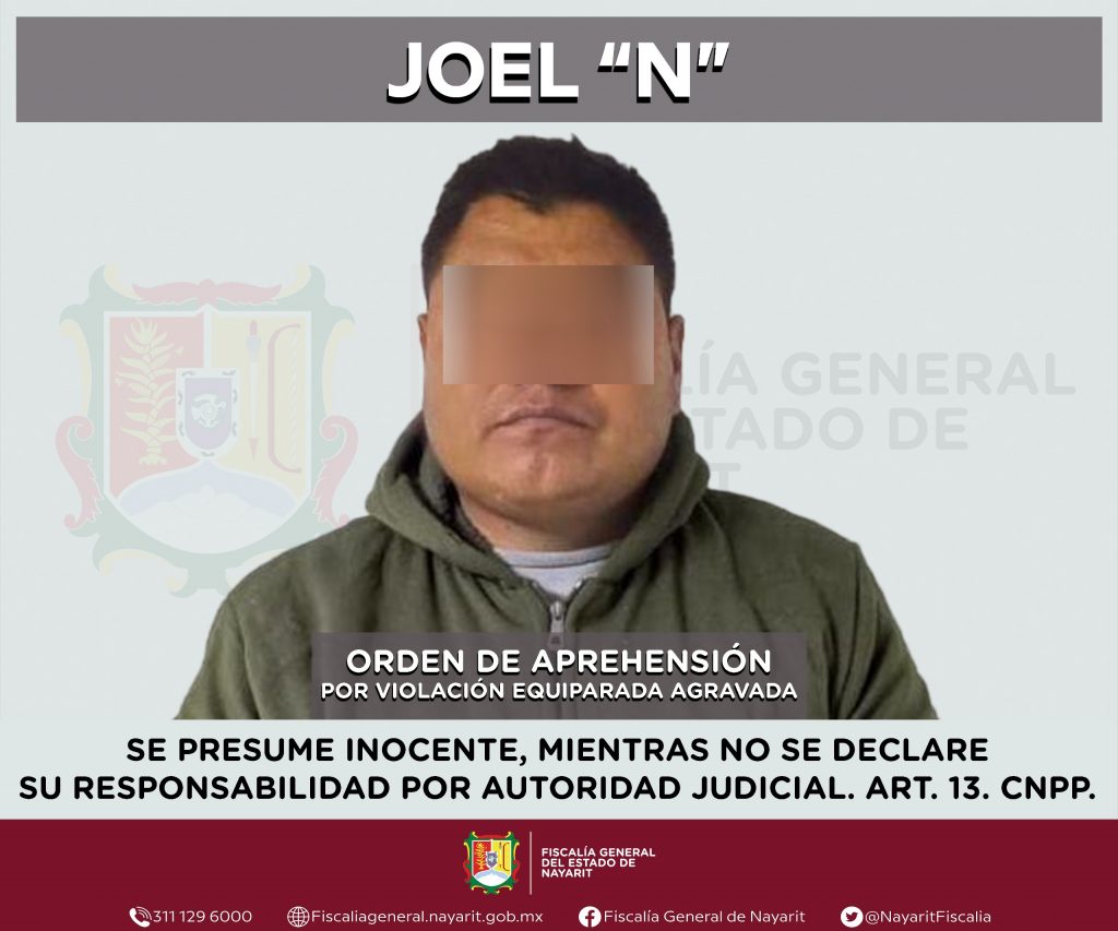 La Fiscalía General del estado de Nayarit a través de la Agencia de Investigación Criminal ejecutó una orden de aprehensión en la ciudad de Tepic contra Joel “N”, por su presunta participación en hechos que según apreciación de la ley encuadran el delito de violación equiparada agravada, cometido en contra de una adolescente de identidad reservada.