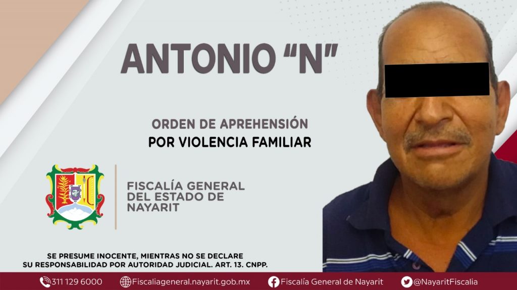En la capital nayarita, elementos de la Agencia de Investigación Criminal dieron cumplimiento a una orden de aprehensión que se obsequió contra Antonio “N”, por su probable participación en hechos que la ley califica como delito de violencia familiar, cometido en agravio de una persona de sexo femenino cuya identidad se reserva.