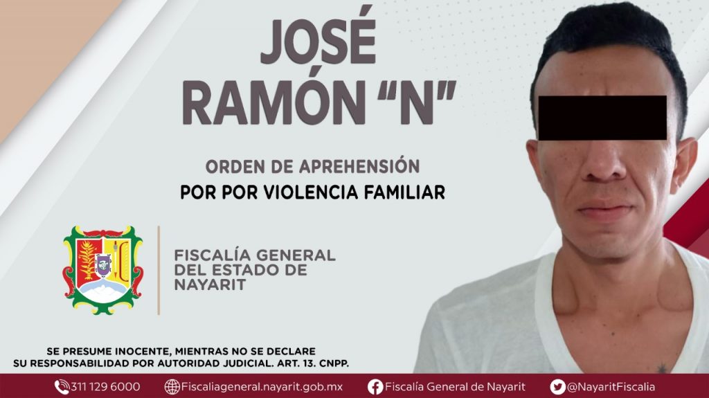 La Fiscalía General de Nayarit a través de la Agencia de Investigación Criminal ejecutó una orden de aprehensión en la capital nayarita contra José Ramón “N”, por su presunta participación en hechos que según apreciación de la ley encuadran el delito de violencia familiar, cometido en agravio de una persona de sexo femenino de identidad reservada.