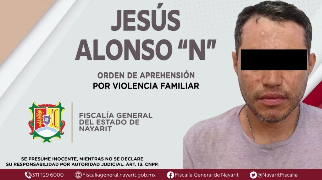 La Fiscalía General de Nayarit a través de la Agencia de Investigación Criminal dio cumplimiento a una orden de aprehensión en la ciudad de Tepic contra Jesús Alonso “N”, quien es originario y vecino de la capital nayarita, por su probable responsabilidad penal en hechos que bajo la apreciación de la ley configuran el delito de violencia familiar, cometido en agravio de una mujer de identidad reservada.