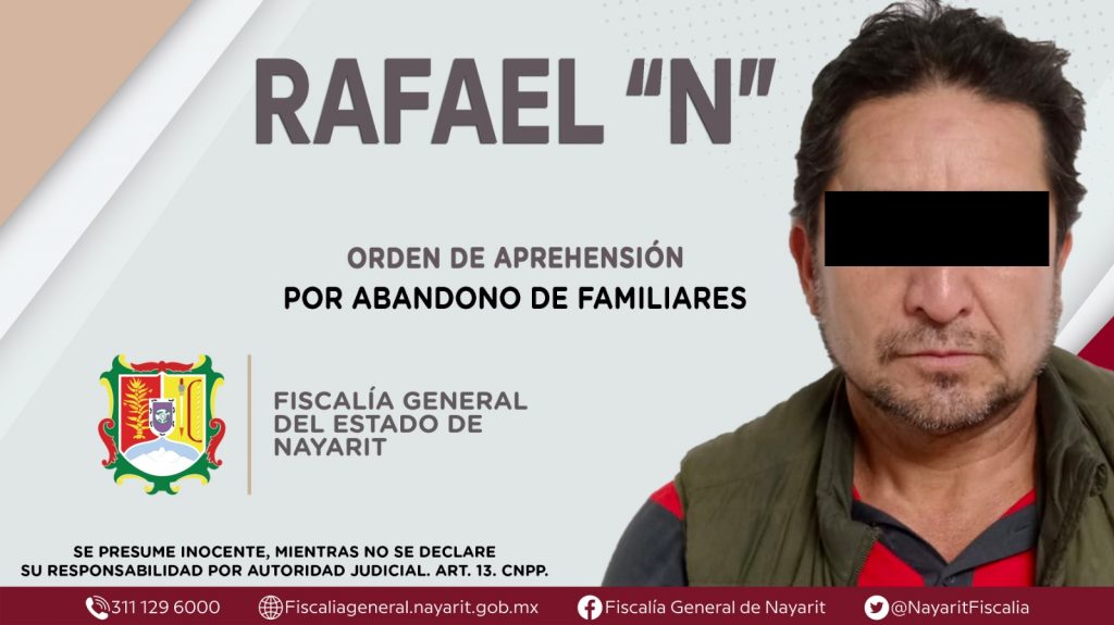 Elementos de la Agencia de Investigación Criminal de Nayarit ejecutaron una orden de aprehensión en la capital nayarita contra Rafael “N”, por su presunta participación en hechos que según apreciación de la ley configuran el delito de abandono de familiares, cometido contra una persona menor de dieciocho años de identidad reservada.