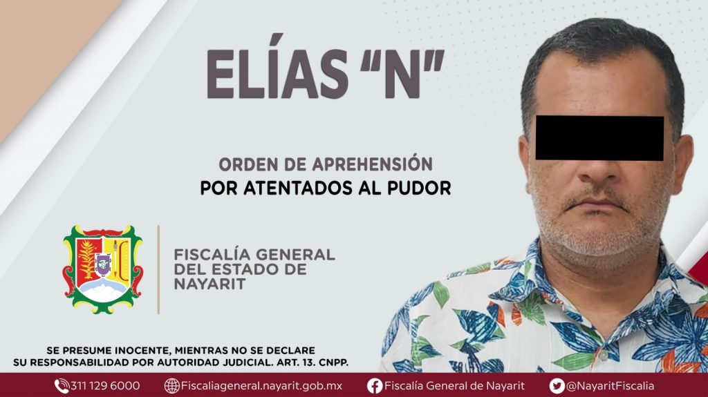 La Fiscalía General del Estado a través de la Agencia de Investigación Criminal dio cumplimiento a una orden de aprehensión en el municipio de Bahía de Banderas contra Elías “N”, por su presunta participación en hechos que según valoración de la ley configuran el delito de atentados al pudor, ilícito cometido en agravio de una persona menor de dieciocho años de identidad reservada.