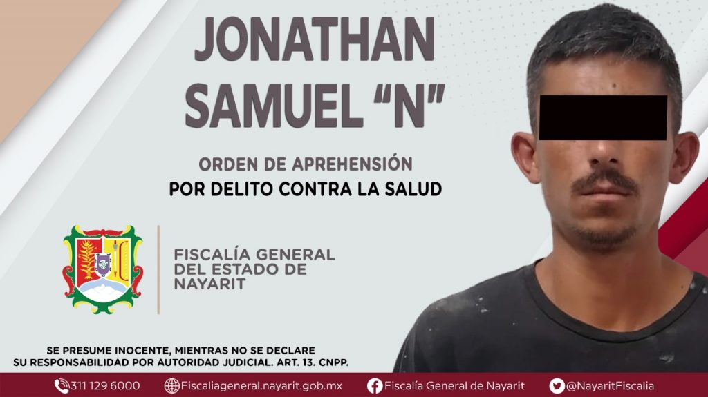 En la ciudad de Tepic, la Fiscalía General de Nayarit a través del Centro de Operaciones Estratégicas C.O.E., ejecutó una orden de aprehensión contra Jonathan Samuel “N”, quien es originario y vecino de la ciudad de Tepic, por su presuntiva responsabilidad penal en hechos que la ley califica como delito contra la salud en su modalidad de narcomenudeo -en su hipótesis de posesión de estupefacientes (marihuana)-, cometido en agravio de la sociedad.
