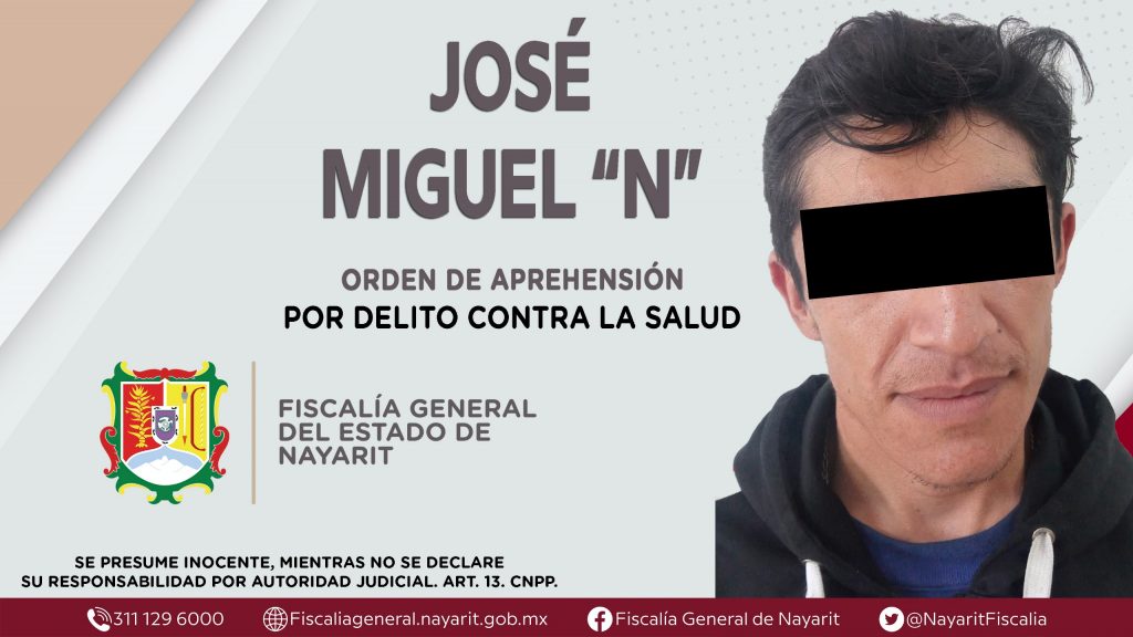 La Fiscalía General del Estado a través de la Agencia de Investigación Criminal dio cumplimiento a una orden de aprehensión en la ciudad de Tepic contra José Miguel “N”, por su presunta participación en hechos que según apreciación de la ley encuadran el delito contra la salud en su modalidad de narcomenudeo -en la hipótesis de posesión de estupefacientes (marihuana)-, cometido en agravio de la sociedad.