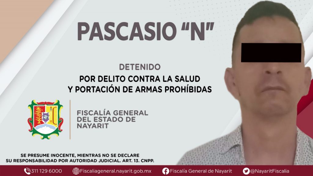 Por lo anterior fue detenido como presunto responsable de hechos que según la ley configuran los delitos contra la salud y portación de armas prohibidas, por lo que fue puesto a disposición del Ministerio Público con objeto de realizar los trámites de rigor que definirán su condición legal.