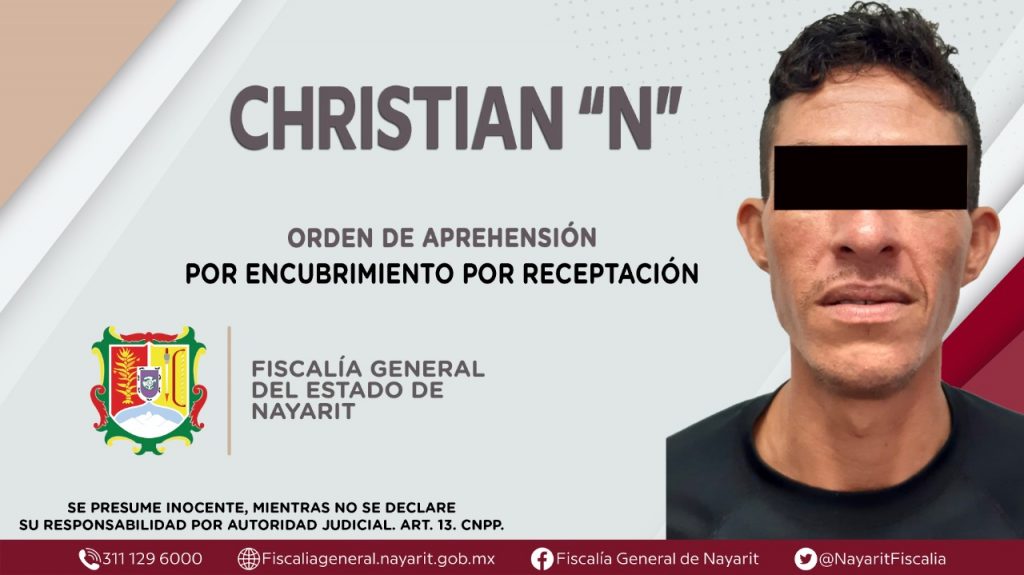 En la ciudad de Tepic, la Fiscalía General de Nayarit a través de la Agencia de Investigación Criminal ejecutó una orden de aprehensión contra Christian “N”, quien es originario y vecino de la capital nayarita, por su presuntiva responsabilidad penal en hechos que la ley califica como delito de encubrimiento por receptación, cometido en agravio de la sociedad.