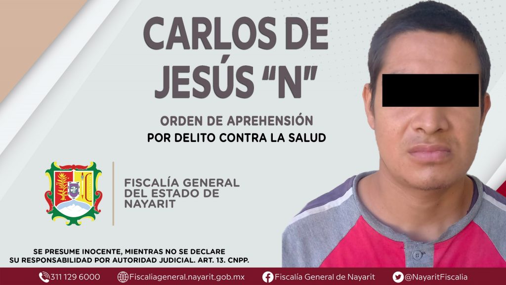 Elementos de la Agencia de Investigación Criminal de Nayarit ejecutaron una orden de aprehensión en la ciudad de Tepic contra Carlos de Jesús “N”, por su presuntiva participación en hechos que según apreciación de la ley encuadran los delito contra la salud en su modalidad de narcomenudeo -en su hipótesis de posesión de estupefacientes (marihuana)-, cometido en agravio de la sociedad.