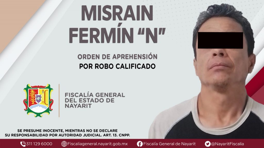 En la capital nayarita, elementos de la Agencia de Investigación Criminal de Nayarit dieron cumplimiento a una orden de aprehensión que se obsequió contra Misrain Fermín “N”, por su probable participación en hechos que la ley califica como delito de robo calificado, cometido en perjuicio de una persona de sexo masculino de identidad reservada.