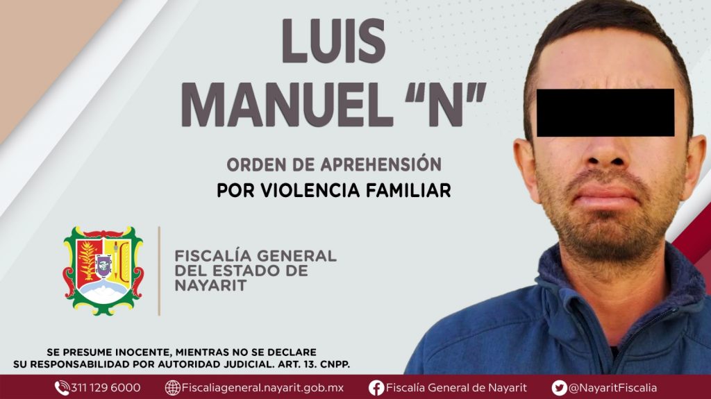 Elementos de la Agencia de Investigación Criminal de Nayarit ejecutaron una orden de aprehensión en la ciudad de Tepic contra Luis Manuel “N”, por su presunta participación en hechos que según apreciación de la ley encuadran el delito de violencia familiar, cometido en agravio de una persona de sexo femenino cuya identidad se reserva.