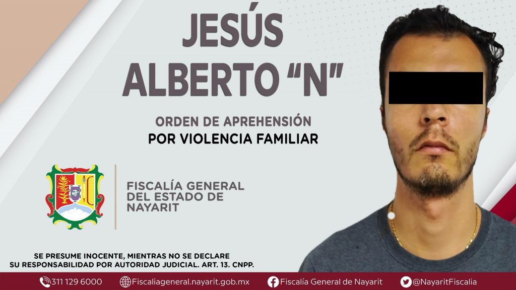 Elementos de la Agencia de Investigación Criminal de Nayarit ejecutaron una orden de aprehensión en la ciudad de Tepic contra Jesús Alberto “N”, por su presunta participación en hechos que según apreciación de la ley encuadran el delito de violencia familiar, en agravio de una mujer de identidad reservada.