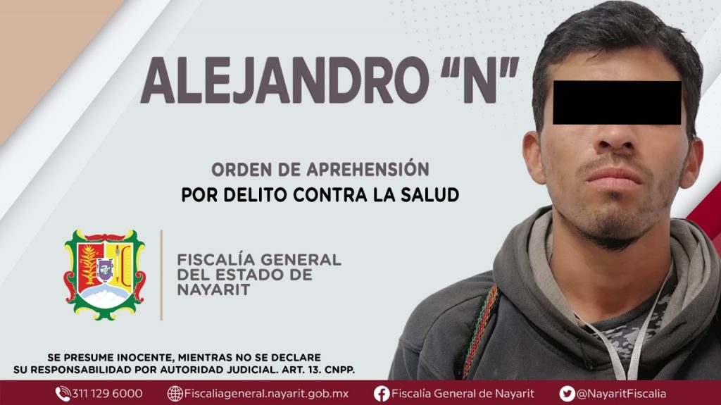La Fiscalía General de Nayarit a través del Centro de Operaciones Estratégicas (C.O.E.) ejecutó una orden de aprehensión en la ciudad de Tepic contra Alejandro “N”, originario de Zapopan, Jalisco, por su presunta participación en hechos que según apreciación de la ley encuadran el delito contra la salud en su modalidad de narcomenudeo -en su hipótesis de posesión de psicotrópicos (metanfetaminas)-, cometido en agravio de la sociedad.