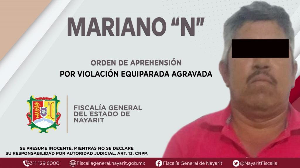En el municipio de Santiago Ixcuintla, elementos de la Agencia de Investigación Criminal de Nayarit dieron cumplimiento a una orden de aprehensión que se obsequió contra Mariano “N”, por su probable participación en hechos que la ley califica como delito de violación equiparada agravada, ilícito cometido en agravio de una menor de edad de identidad reservada.