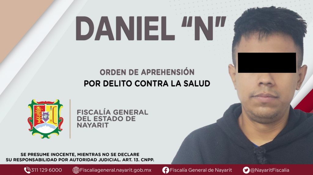 La Fiscalía General de Nayarit a través de la Agencia de Investigación Criminal dio cumplimiento a una orden de aprehensión en la ciudad de Tepic contra Daniel “N”, por su presunta participación en hechos que según apreciación de la ley encuadran el delito contra la salud, en su modalidad de narcomenudeo -en su hipótesis de posesión de psicotrópicos (metanfetaminas)-, cometido en agravio de la sociedad.
