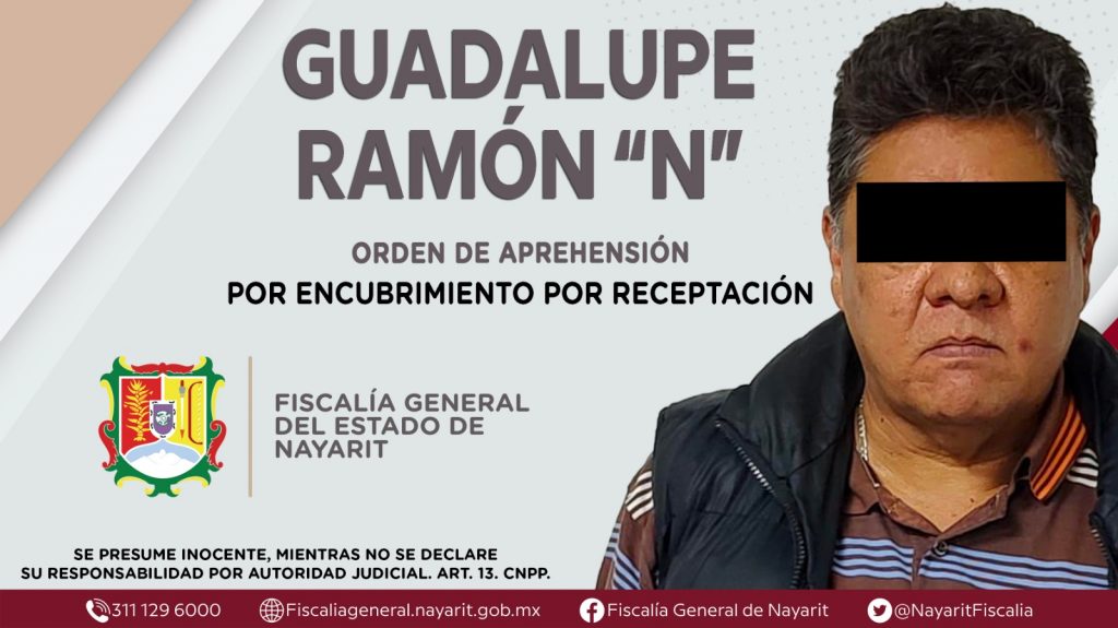 La Fiscalía General del Estado a través de la Agencia de Investigación Criminal cumplimentó una orden de aprehensión en la localidad Mazatán, municipio de Compostela contra Guadalupe Ramón “N”, por su presunta participación en hechos que bajo la apreciación de la ley configuran el delito de encubrimiento por receptación, cometido en agravio de una persona de sexo masculino de identidad reservada.