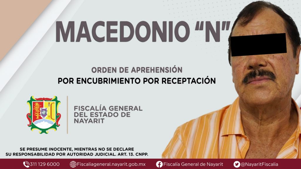 La Fiscalía General del Estado a través de la Agencia de Investigación Criminal dio cumplimiento a una orden de aprehensión en la capital nayarita contra Macedonio “N”, por su presunta participación en hechos que según apreciación de la ley encuadran el delito de encubrimiento por receptación, cometido en agravio de la sociedad.