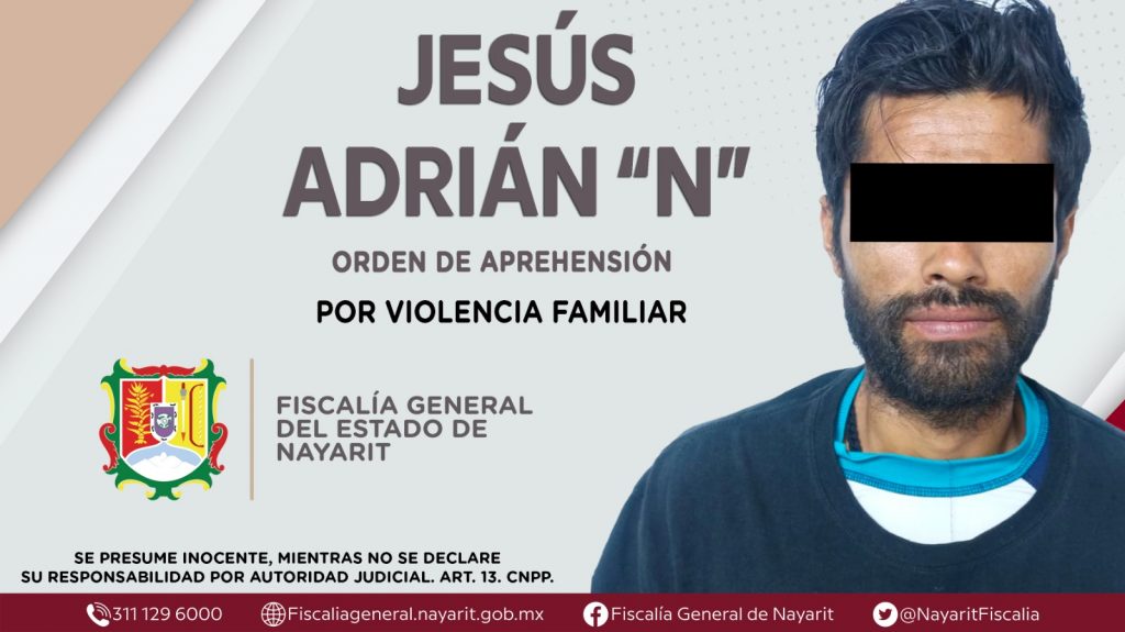 La Fiscalía General del Estado a través de la Agencia de Investigación Criminal dio cumplimiento a una orden de aprehensión en la ciudad de Tepic contra Jesús Adrián “N”, por su presunta participación en hechos que según valoración de la ley configuran el delito de violencia familiar, ilícito cometido en agravio de una persona de sexo femenino de identidad reservada.