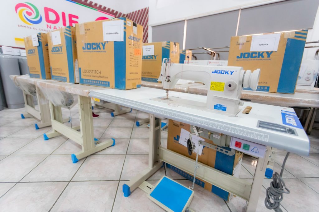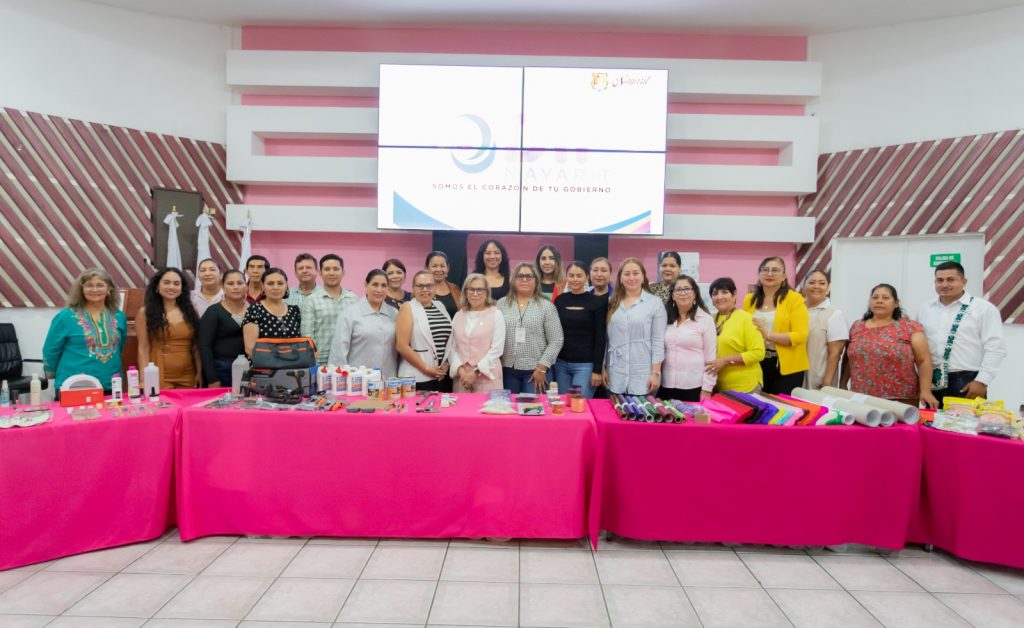 La presidenta del Sistema DIF Nayarit, doctora Beatriz Estrada Martínez, encabezó la entrega de equipo para las Casas de la Mujer que hay en los 20 municipios de la entidad, con la finalidad de reforzar los cursos de Carpintería, Corte y Confección, Cocina, Repostería, Cultora de Belleza y Manualidades (Fomix, Servilleta Bordada, Decoración con Globos y Pintura en Tela) que se otorgan de manera gratuita, a través de la coordinación Casa de la Mujer.