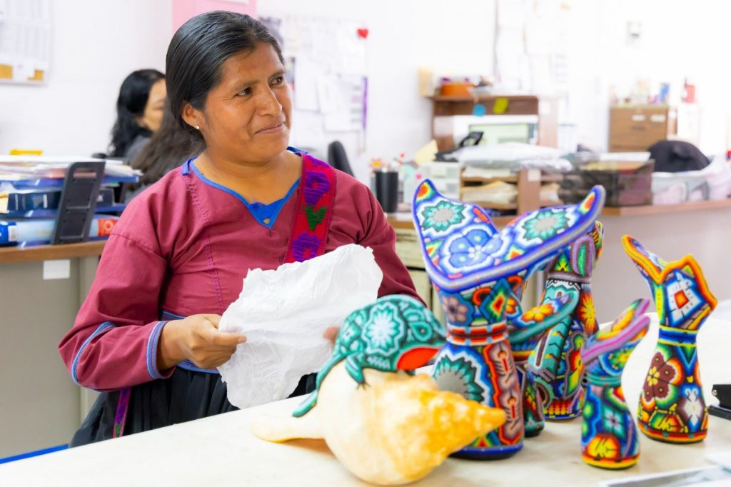 A través de la Coordinación de Fomento a las Artesanías, se apoya con la entrega de materia prima a las y los artesanos, así como la adquisición de sus piezas ya terminadas. Con este apoyo, el Corazón de Nayarit ha logrado que cientos de ellas y ellos encuentren en su talento una fuente de ingreso. Para Lucrecia, este apoyo ha sido crucial.