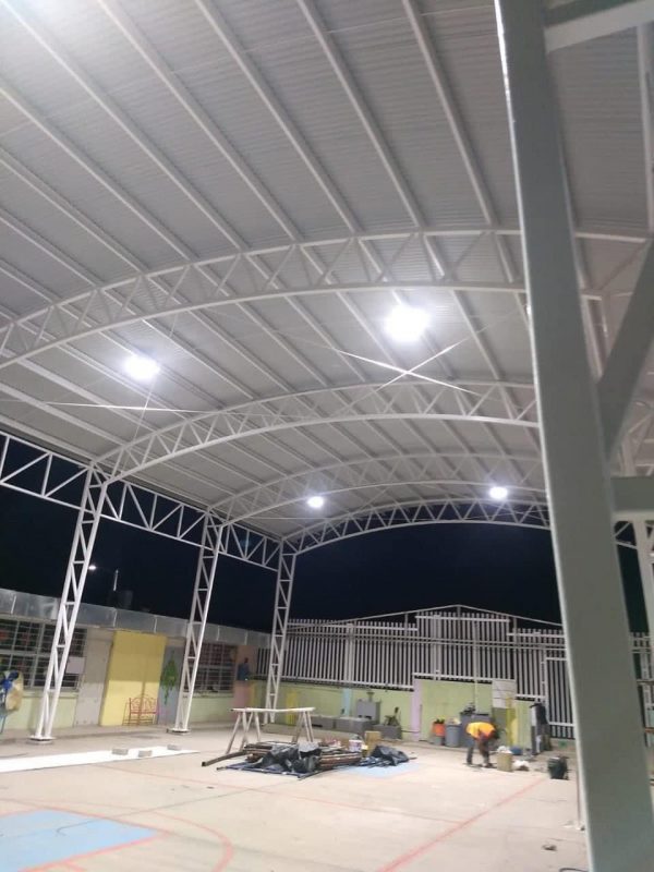 «Este es el aspecto que tiene el domo del Jardín de Niños Estefanía Castañeda, de Ixtlán del Río: ya está iluminado y próximo a entregarse para su uso. Nuestras niñas y niños merecen recrearse y ejercitarse en condiciones dignas y que favorezcan su pleno desarrollo físico, intelectual y social. En Nayarit, jamás escatimaremos cuando se trata del derecho social más importante para el futuro: la educación».
