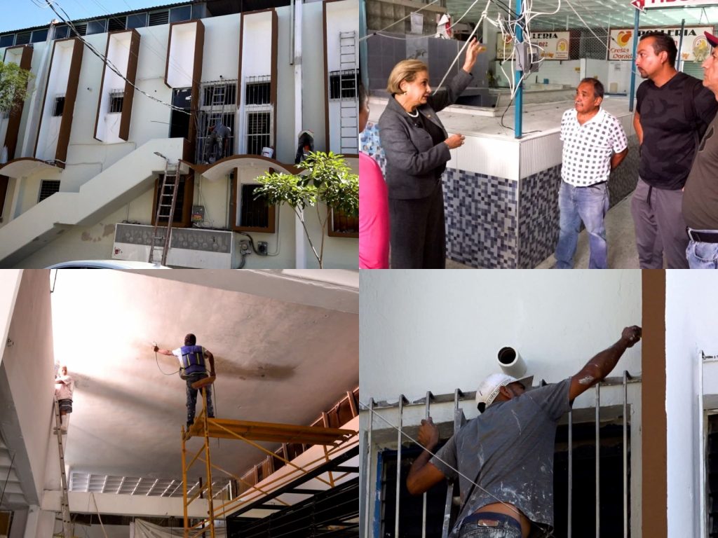 La secretaria, Claudia Raquel Araujo Gómez supervisó los trabajos junto a locatarios, constatando la renovación del sistema eléctrico, labores de pintura, el mantenimiento de cortinas metálicas y la limpieza integral del inmueble.