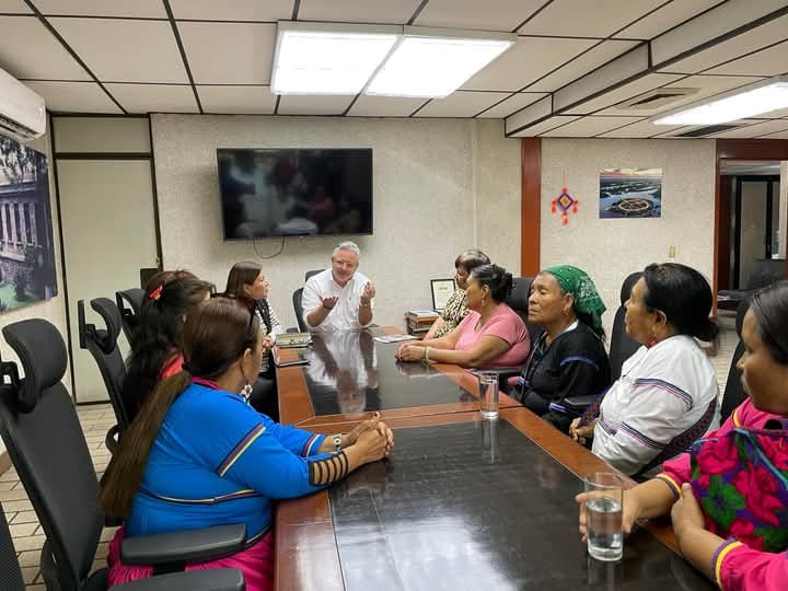 El secretario de Economía, Cesar Octavio Lara Fonseca, en compañía de la directora general del Instituto para la Mujer Nayarita, Margarita Morán y la directora general de FONAY, Norma Patricia Salazar Brieño, atendieron a mujeres artesanas nayaritas, con el objetivo de darles apoyo y acompañamiento para fortalecer sus actividades económicas y contribuir al empoderamiento de las mujeres de pueblos originarios.