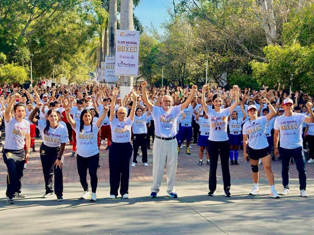 El gobernador del estado, Miguel Ángel Navarro Quintero, junto a su esposa, la presidenta del Sistema DIF Nayarit, doctora Beatriz Estrada Martínez, encabezaron el evento en el Parque La Loma, de Tepic, donde asistieron cientos de familias, jóvenes deportistas y amantes del boxeo. El mandatario estatal reafirmó su convicción, que comparte con la presidenta de México, Claudia Sheinbaum Pardo, de que el deporte es una vía efectiva para transformar a la sociedad, fortalecer la convivencia y alejar a las juventudes de las adicciones. Aseguró que su gobierno ha invertido como nunca antes en infraestructura, programas y formación deportiva para consolidar un Nayarit más sano, activo y en armonía.