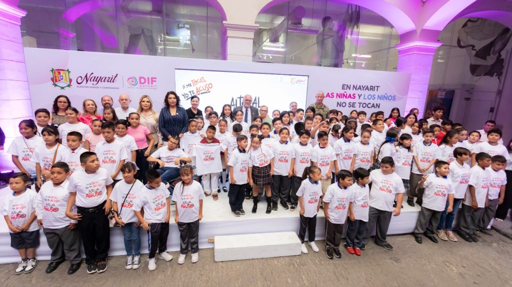El gobernador del estado Miguel Ángel Navarro Quintero, y su esposa, la presidenta del Sistema DIF Nayarit, doctora Beatriz Estrada Martínez, encabezaron el arranque de la campaña “En Nayarit las Niñas y los Niños No se Tocan”, la cual tiene el propósito de erradicar la violencia contra niñas, niños y adolescentes, y reunió a autoridades de todos los niveles gubernamentales, destacando la importancia de un compromiso conjunto para un futuro más seguro.