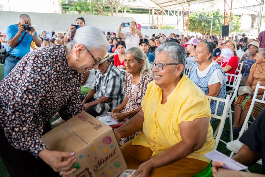 Fue en la Unidad Deportiva de la cabecera municipal de Tecuala, donde se otorgaron 72 cheques de los programas Cuidando Tu Bienestar y Fondo de Recompensa a personas cuidadoras y emprendedoras de los tres municipios. Se distribuyeron 4 mil 375 dotaciones alimentarias de los programas: PAB, 1,000 Días de Vida y Atención a Personas en Situación de Vulnerabilidad; además, se clausuraron 16 cursos de carreras para la vida, se entregaron insumos y herramientas para algunos grupos de egresados y certificados del INEA.