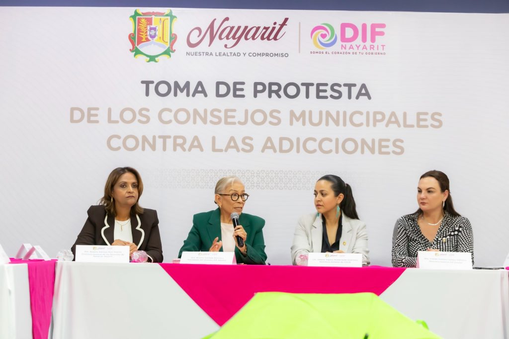 La doctora Beatriz Estrada Martínez, presidenta del Sistema DIF Nayarit, presidió la toma de protesta e instalación de los Consejos Municipales contra las Adicciones (COMCA), una iniciativa clave para prevenir el consumo de sustancias adictivas y promover la salud mental entre la población nayarita.