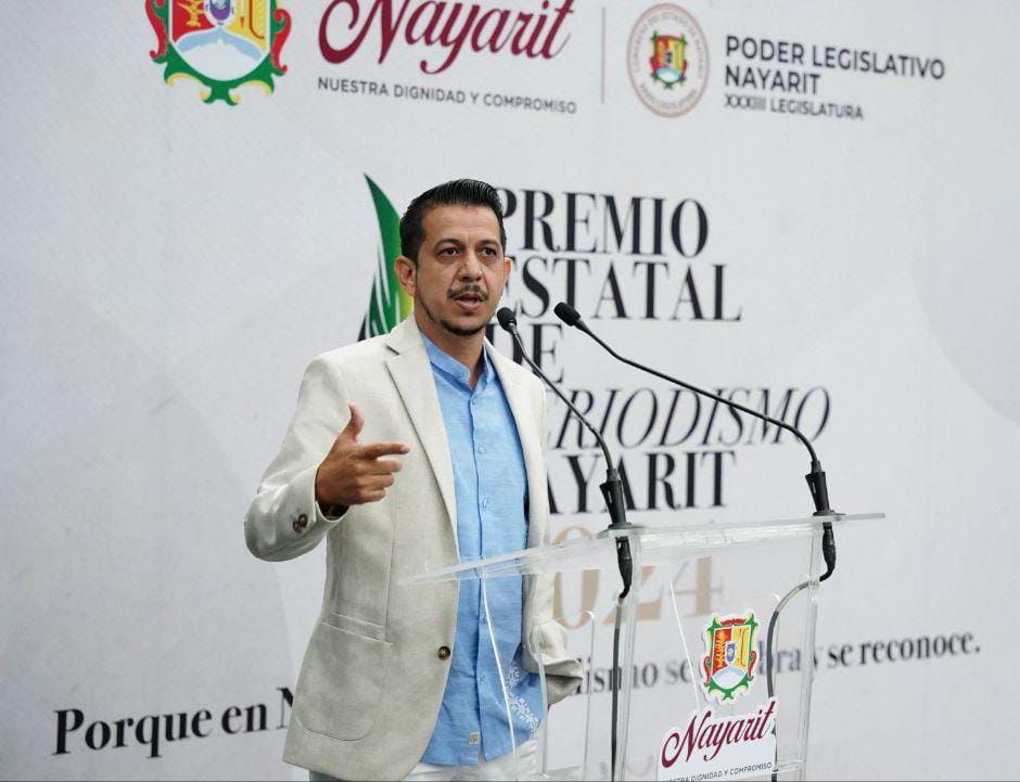 En su intervención, el gobernador del estado mencionó que el periodismo es sin lugar a dudas necesario para preservar los dos derechos humanos universales por excelencia, que es el derecho a la vida y el derecho a la libertad, y dentro de este derecho a la libertad, la libertad de expresión, que no debe tener más límites que la conciencia que está dando el comentario exacto a la circunstancia que de manera verídica, él considera que está sucediendo después de un proceso de investigación, o de una percepción inclusive, que en ocasiones la vincula también a hechos reales en el ejercicio del poder público, por lo que las situaciones en Nayarit deben de mejorar a través del ejercicio de ustedes, un ejercicio que debe de ser respetado.