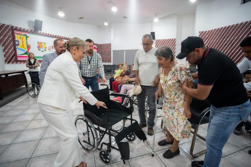 La señora Leonor Rodríguez Godínez de 70 años de edad, desde hace tiempo ha recibido apoyo para su hija y ahora, una silla de ruedas para ella: “Muchas gracias señora presidenta porque a mí me han ayudado mucho, me han apoyado con mi niña, mes a mes vengo por pañales y no encuentro las palabras de agradecimiento para usted, estoy muy feliz porque siempre que tengo un problema que se me atraviesa, vengo aquí, por eso estoy muy agradecida, Dios la bendiga”.
