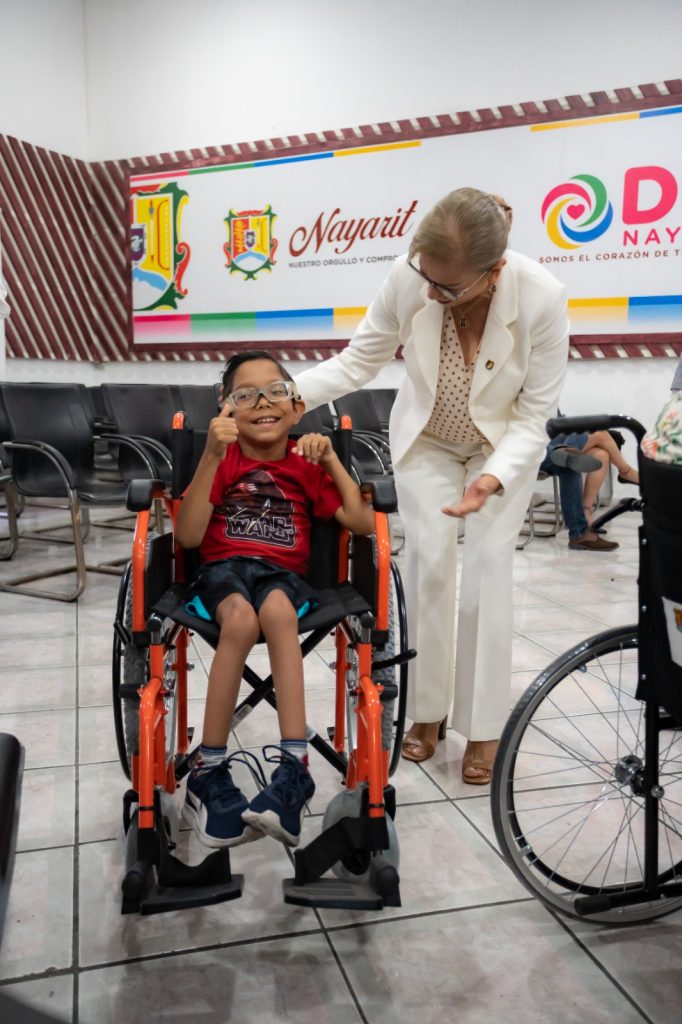 Atender con el corazón y ayudar en el bienestar de todas las personas con alguna discapacidad es uno de los compromisos del Sistema DIF Nayarit, así lo aseguró su presidenta, doctora Beatriz Estrada Martínez, en la reciente entrega de nueve sillas de ruedas y un auxiliar de baño para beneficiarias y beneficiarios de Tepic y Tuxpan.