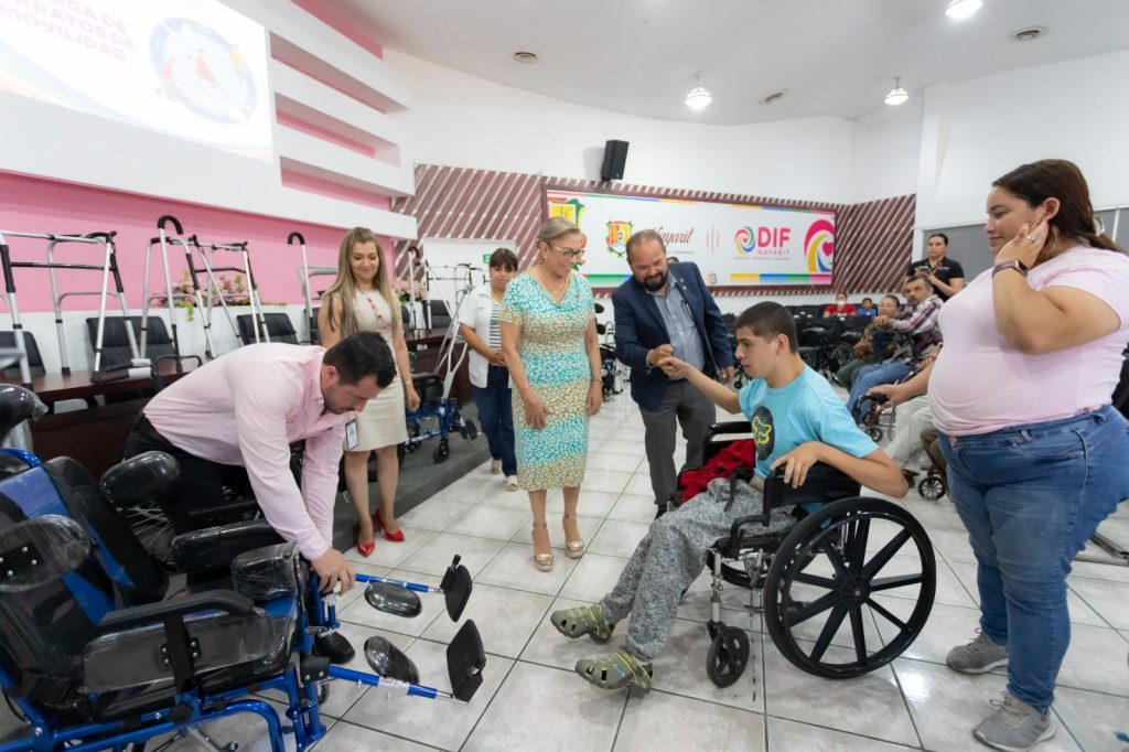 Con el objetivo de facilitar su desarrollo y fortalecer su bienestar integral, el Sistema DIF Nayarit, que preside la doctora Beatriz Estrada Martínez, en conjunto con la Beneficencia Pública de Nayarit entregaron 98 aparatos de movilidad asistida para personas con discapacidad temporal o permanente de 11 municipios de la entidad.