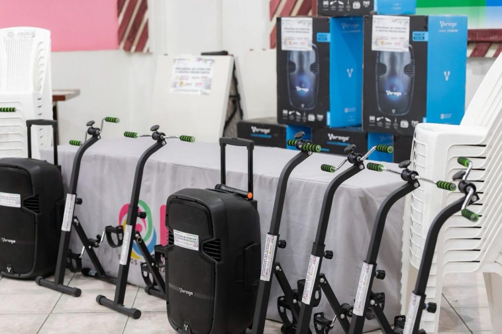 - Se entregaron tablones, sillas, bocinas y pedales para ejercitarse