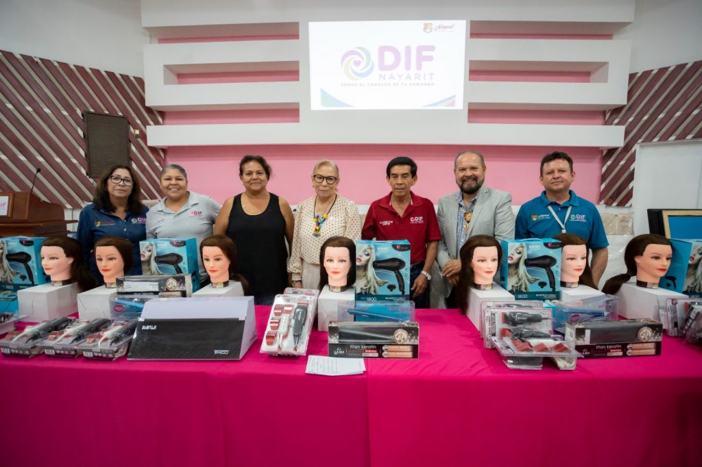 La presidenta del Sistema DIF Nayarit, doctora Beatriz Estrada Martínez, encabezó la entrega de material y equipo para las Casas de la Mujer que hay en nueve municipios de la entidad, en apoyo a los cursos de Primeros Auxilios, Cultora de Belleza, Herbolaria Mexicana y Decoración de Globos.