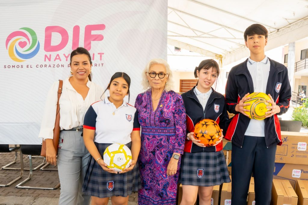 Generar entornos educativos con calidad y calidez es una prioridad para la presidenta del Sistema DIF Nayarit, doctora Beatriz Estrada Martínez, quien encabezó la entrega de apoyos en especie a la escuela primaria Ignacio Manuel Altamirano, de Ixtlán del Río, y a la secundaria Justo Sierra, de Tepic.