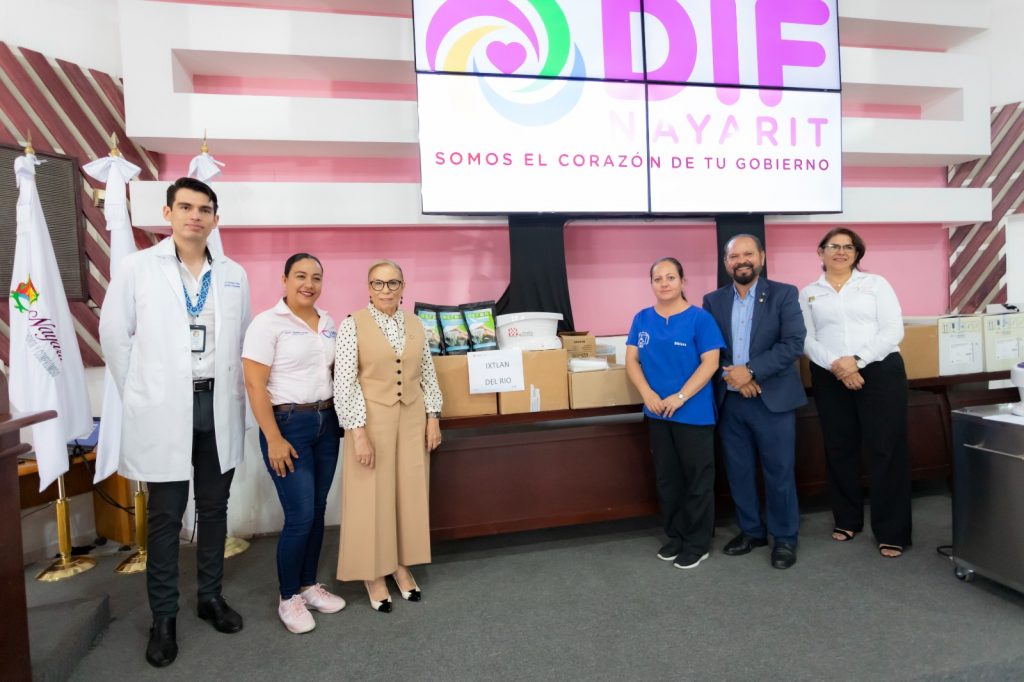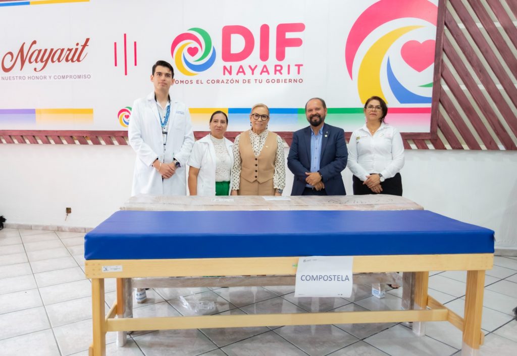 La presidenta del Sistema DIF Nayarit, doctora Beatriz Estrada Martínez, encabezó la entrega de equipo médico para las Unidades Básicas de Rehabilitación (UBR) de los municipios de Ahuacatlán, San Blas, Compostela, Amatlán de Cañas, Ixtlán del Río y Ruiz, para beneficio de mil 264 personas que acuden a terapias de rehabilitación.