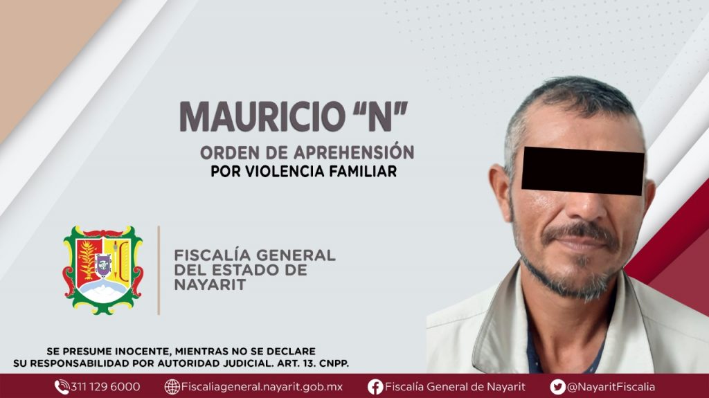 La Fiscalía General de Nayarit a través de la Agencia de Investigación Criminal dio cumplimiento a una orden de aprehensión contra Mauricio “N” , por su presunta participación en hechos que según apreciación de la ley encuadran el delito de violencia familiar, cometido en agravio de una persona de sexo femenino de identidad reservada.