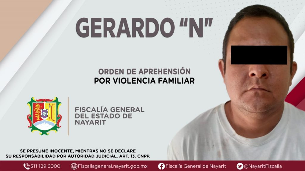 La Fiscalía General de Nayarit a través de la Agencia de Investigación Criminal dio cumplimiento a una orden de aprehensión en la localidad Las Varas, municipio de Compostela contra Gerardo “N”, por su presunta participación en hechos que según apreciación de la ley encuadran el delito de violencia familiar, cometido en agravio de una persona de sexo femenino de identidad reservada.