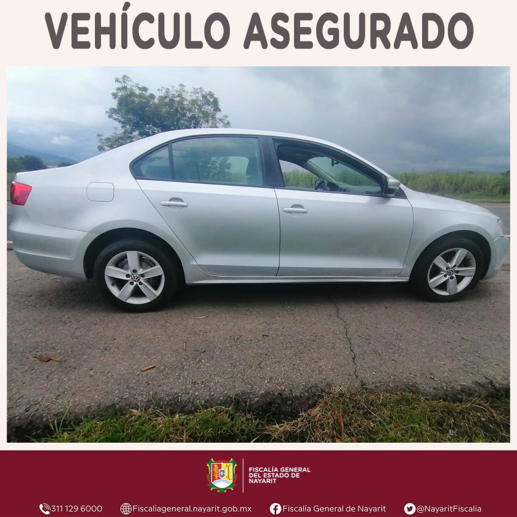 Dicha unidad es de la marca Volkswagen, tipo Sedán, línea Jetta, modelo 2011, color gris, con placas de circulación JLG-13-02 del estado de Nayarit; número de serie 3VW2W1169BM380436. El vehículo automotor fue puesto a disposición del Ministerio Público para las gestiones legales que procedan.