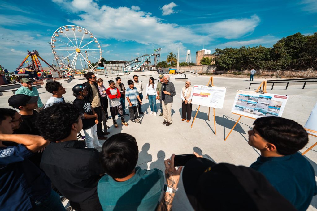 El gobernador, Miguel Ángel Navarro Quintero, acompañado de su esposa, la doctora Beatriz Estrada Martínez, presidenta del Sistema DIF Nayarit, realizó un recorrido por el área destinada al skateboarding en el Recinto Ferial de Tepic, un proyecto diseñado con la participación de jóvenes nayaritas. Esta obra se encuentra en su etapa final y próximamente quedará concluida con la instalación de luminarias y los últimos detalles en los servicios sanitarios.