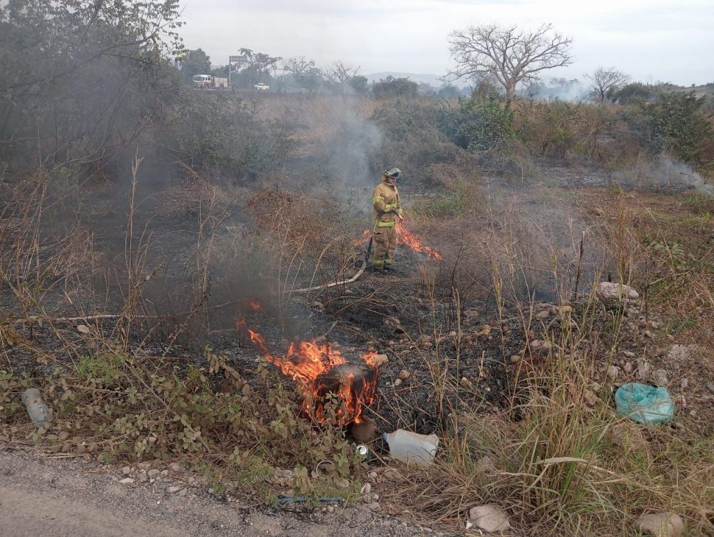 Las acciones comenzaron tras recibir un reporte a la línea 9-1-1, donde se mencionara un incendio de pastizal en la carretera Federal 15, a la altura de la carretera que dirige hacia la localidad de San Felipe Aztatán.