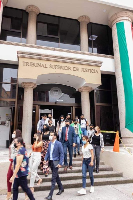 Casi una hora antes, personal propio debidamente capacitado coordinó el simulacro que tuvo lugar en los edificios del Poder Judicial de Nayarit ubicados en el Centro Histórico de Tepic y fue positivamente evaluado por expertos en protección civil.