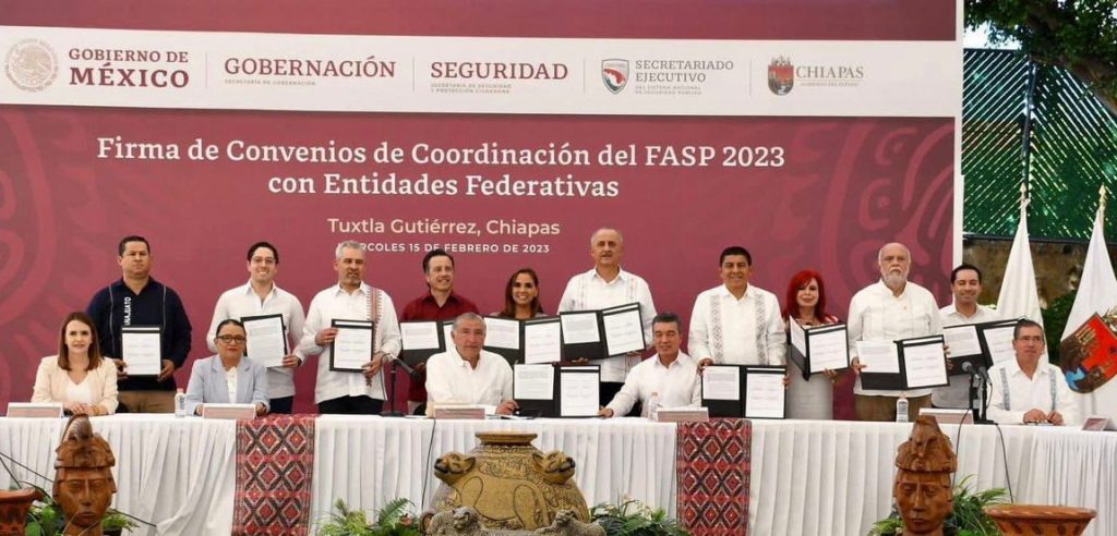 «En Tuxtla Gutiérrez, Chiapas, firmé el convenio de coordinación de nuestro estado con el Gobierno de México para acceder a los recursos del Fondo de Aportaciones para la Seguridad Pública. Tuve ocasión de saludar a los representantes federales, mi amigo el Lic. Adán Augusto López Hernández, Secretario de Gobernación, y la Lic. Rosa Icela Rodríguez, Secretaría de Seguridad y Protección Ciudadana, así como a nueve compañeras y compañeros gobernadores. Con el acceso a este capital, cuyo total para todos los estados parte es de 8 mil millones de pesos, ahorrados por el esfuerzo de los mexicanos y bien administrados por las instituciones de la República, continuaremos fortaleciendo la seguridad en Nayarit para ser el estado más seguro del país».