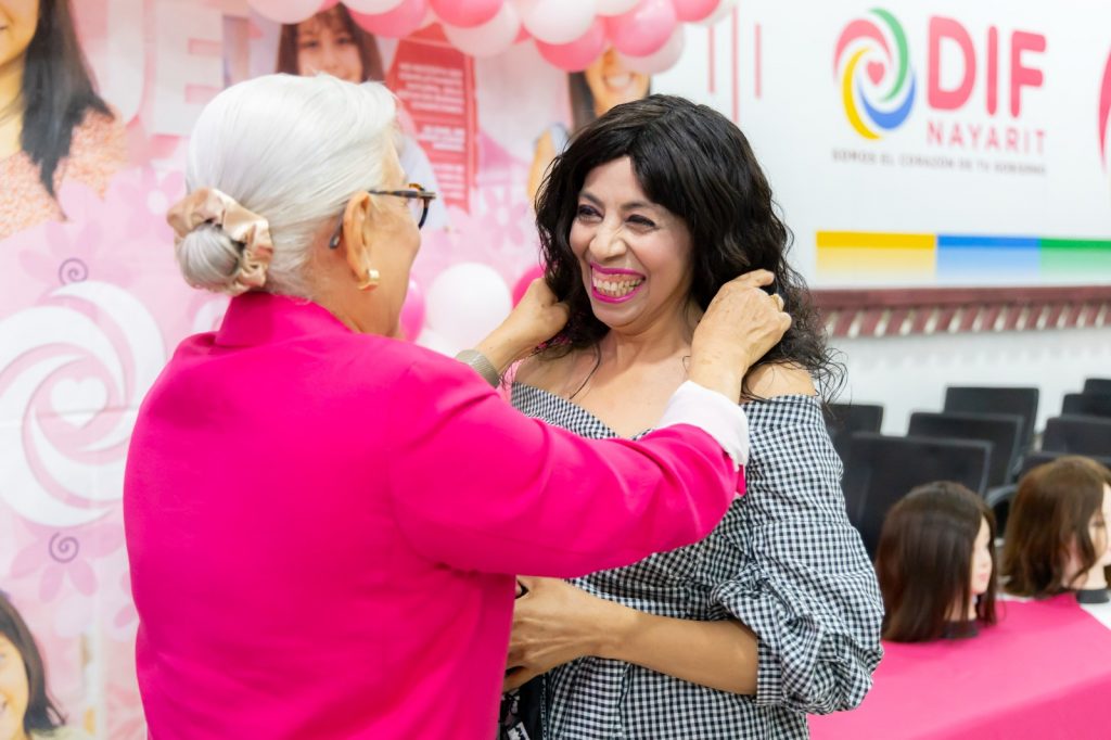Como parte de un compromiso fijo y solidario con quienes más lo necesitan, la presidenta del Sistema DIF Nayarit, doctora Beatriz Estrada Martínez, encabezó la entrega gratuita de seis pelucas oncológicas artesanales, en beneficio de igual número de mujeres que enfrentan la lucha contra el cáncer.