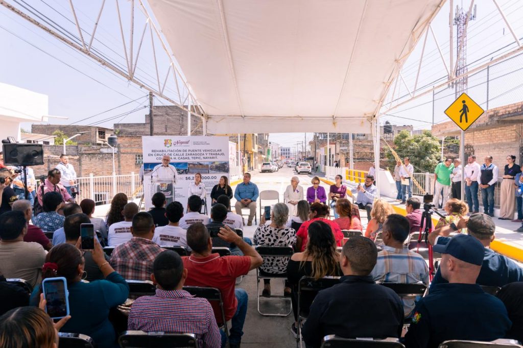 El gobernador del estado, Miguel Ángel Navarro Quintero, junto a su esposa, la presidenta del Sistema DIF Nayarit, doctora Beatriz Estrada Martínez, entregó la rehabilitación del puente vehicular ubicado en el cruce de las calles Zaragoza y Trabajo, en la colonia H. Casas, obra en la que se destinaron 6 millones 200 mil pesos para mejorar la movilidad, la seguridad y las condiciones de tránsito en esta zona de la capital.