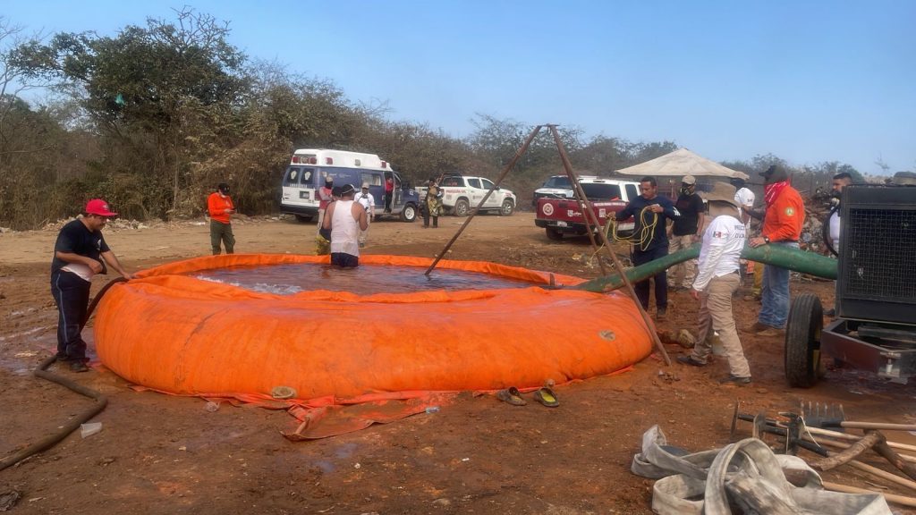 Los trabajos se realizan desde hace 48 horas, registrando un 100 por ciento de control y un 20 por ciento de liquidación. Para fortalecer las tareas operativas, se cuenta con un tanque colapsable, conocido como “calabaza”, con capacidad de entre 35 mil y 40 mil litros de agua, que permitirá abastecer de manera continua a las pipas que trabajan en la zona.