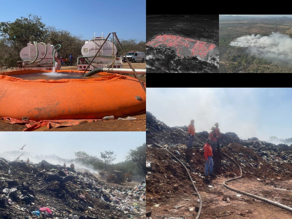 Gobierno del Estado mantiene atención permanente en incendio del relleno sanitario de Acaponeta